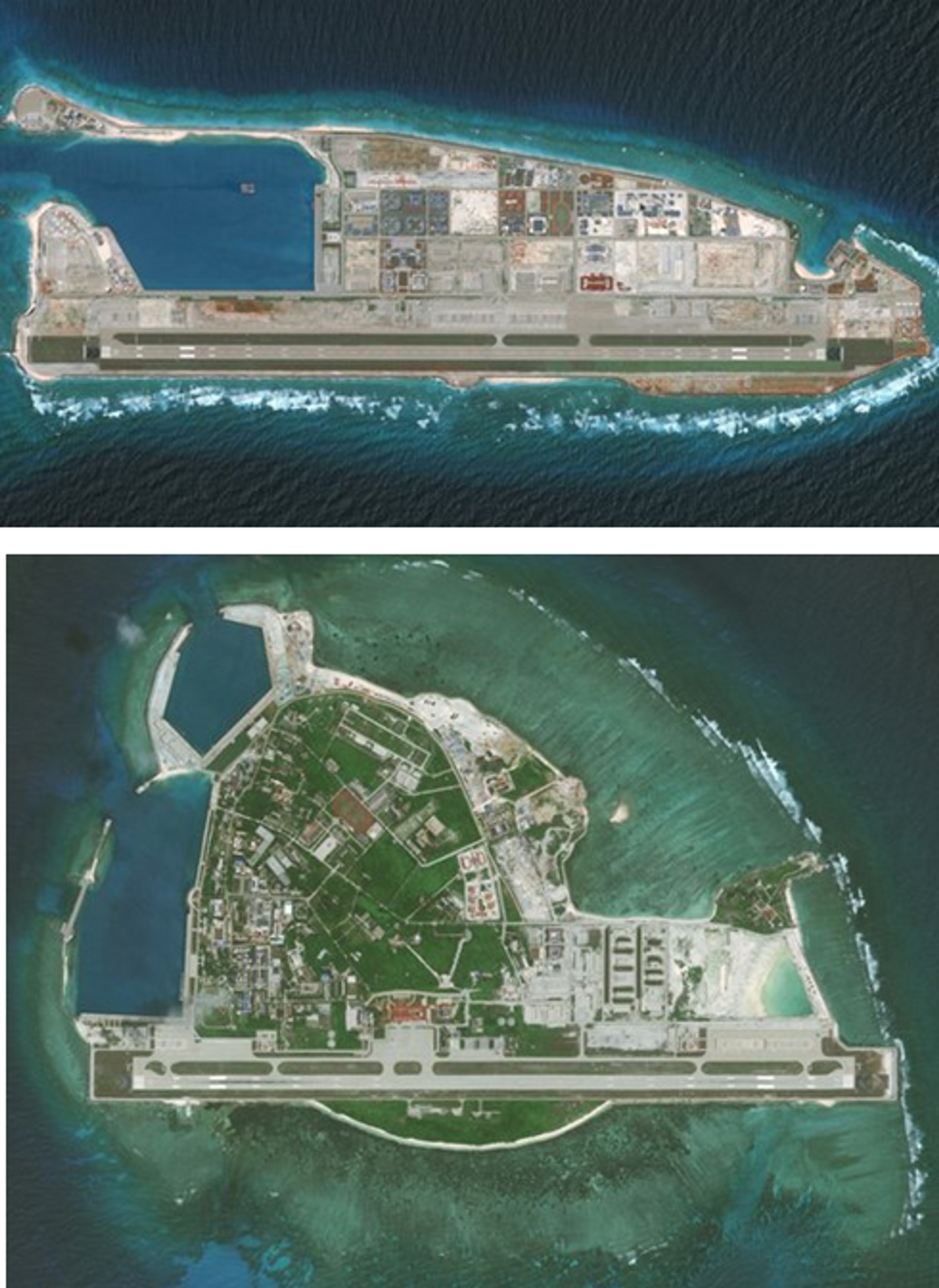 two full-fledged military garrisons of China with runway and missiles deployed.