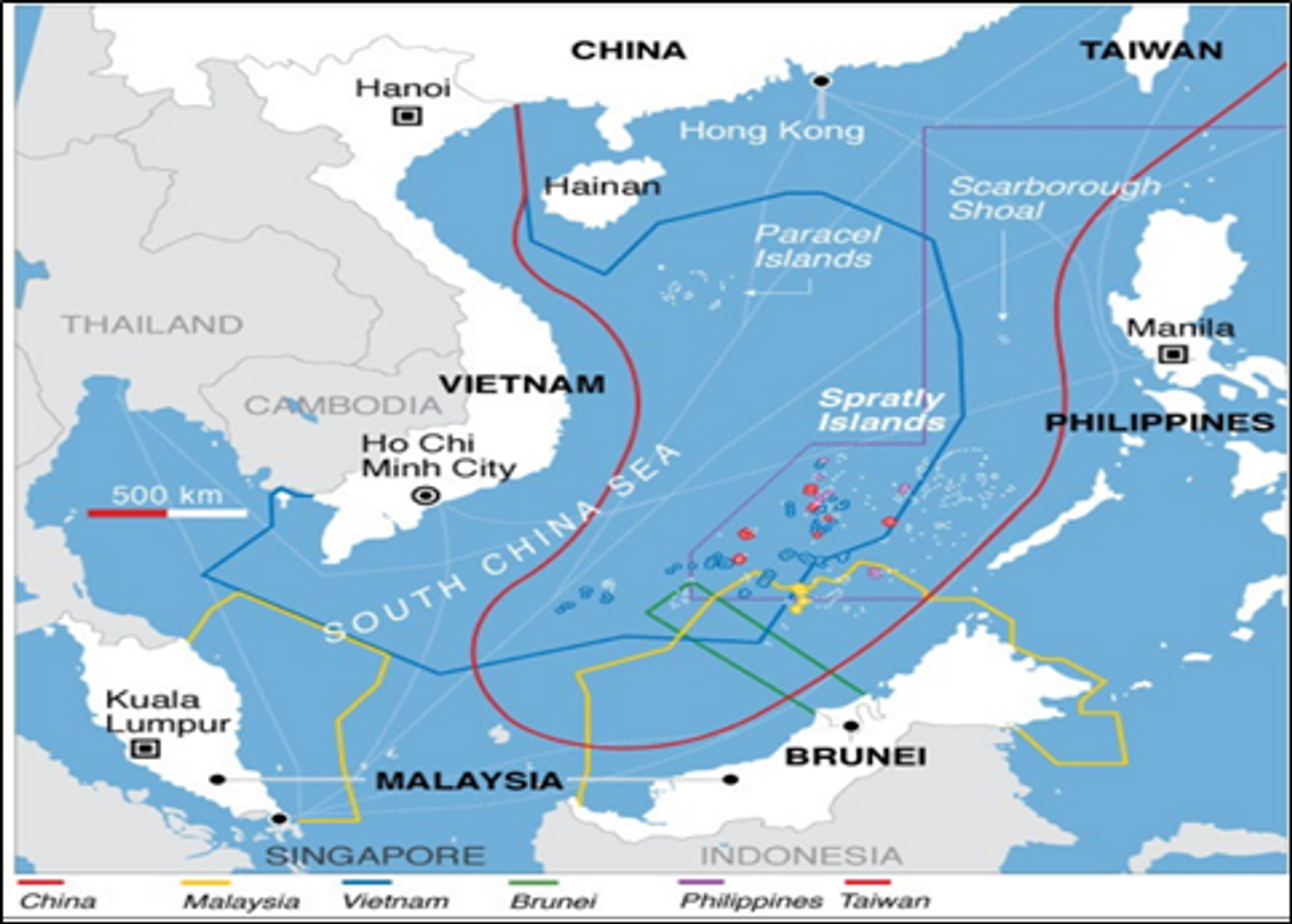 In the South China Sea however, it was Chinese illegal action to acclaim the Contiguous and EEZ (shown by different coloured lines) of all other nations incl Vietnam, Cambodia, Malaysia, Indonesia, Brunei and the Philippines as shown in the figure below. This was possibly the reason, the international tribunal had no hesitation in rejecting the Chinese illegal claims.