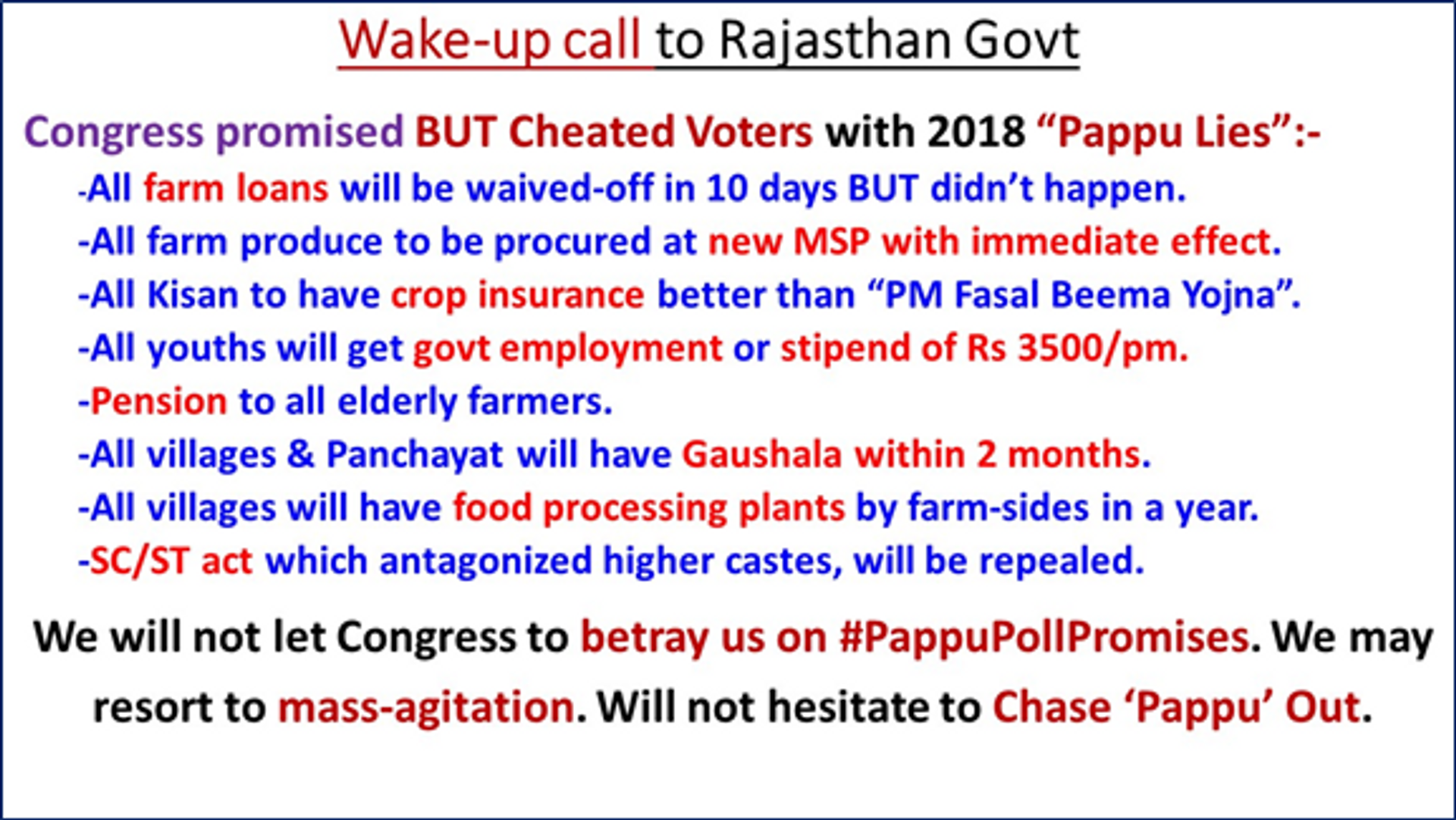 साल 2011 वनाम २०१९ का एक आंकड़ा तो यही दिखाता है कि मोदी सरकार के आने के बाद बेरोजगारी घटी थी लेकिन यह आँकड़ा कोरोना महामारी के पहले की है। इसमें राज्य सरकारों के नाकामी का जिक्र नहीं है। इसमें कोई दो राय नहीं कि राज्य सरकारों को भी बेरोजगारी बढ़ने का जिम्मेदारी तो लेना ही चाहिए। वे अपने अपने राज्यों में रोजगार सृजन में नाकामयाब रहे हैं। राजस्थान की कांग्रेस सरकार का २०१८ में चुनावी वादा और वहाँ के आज की बेरोजगारी की स्थिति कितनी भयावह है राहुल गांधी इसका जिक्र तक नहीं करते। उन्हें तथा कांग्रेस के पूरे मकमें को सिर्फ मोदी सरकार को घेरना है।