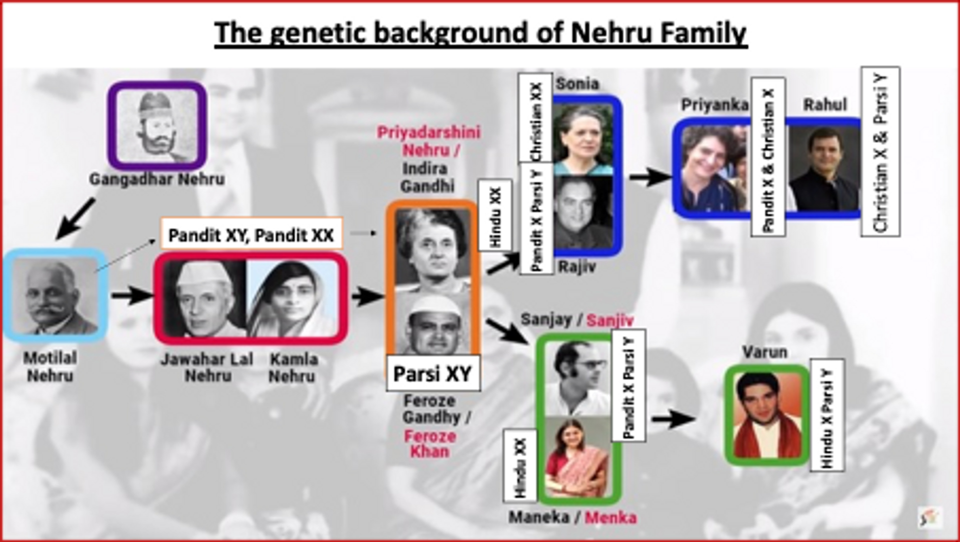 It is well known that today’s descendants of Nehru and Indira, be it Sonia, Rahul or Priyanka Gandhis, carry the genes which are surely not Hindu as shown below. Yet, Rahul Gandhi indulges in repeated theatrics of being ‘Janeudhari Hindu’.