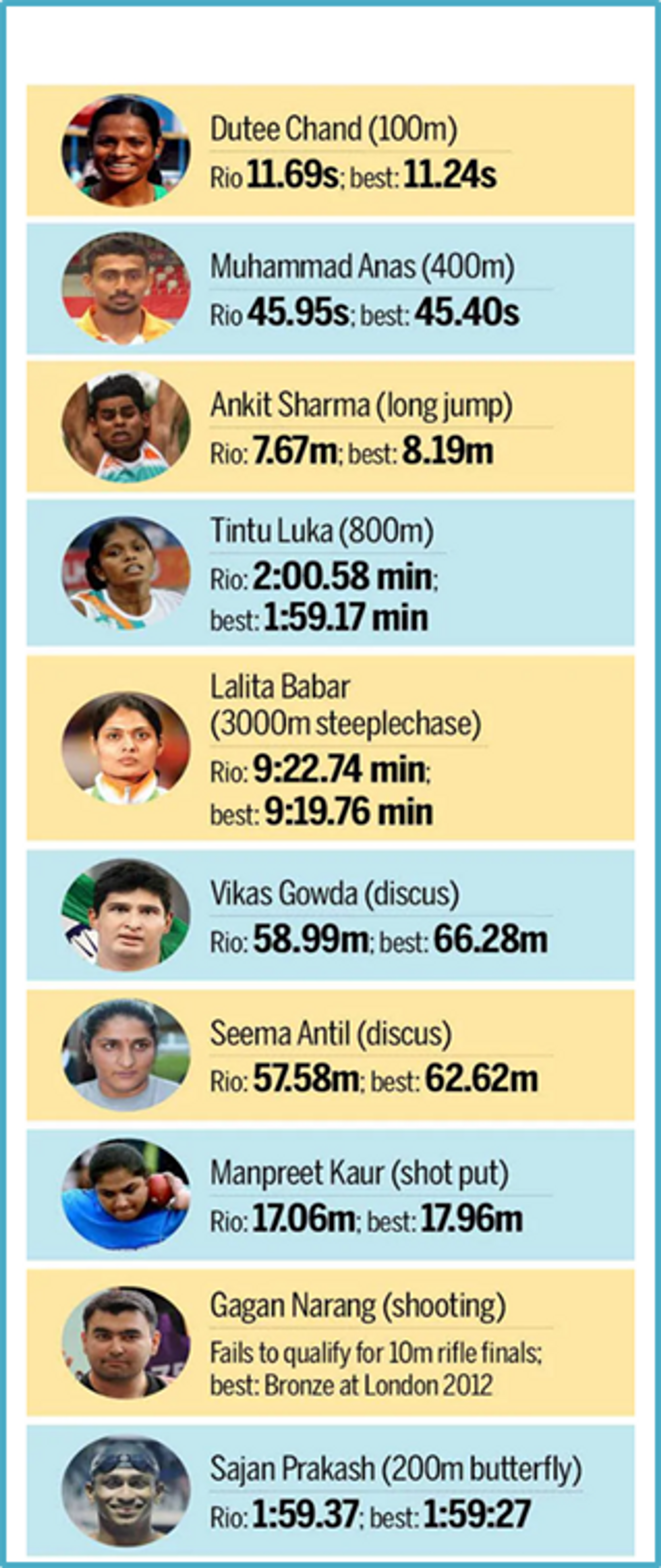 Below ‘par’ of own Performance. There are numerous instances when an athletes have failed to bring-out their own best or performed far below own best in the greatest of the championships. Some examples of Indian athletes are before us, at the 2016 Rio-Olympics many of our prominent athletes were unable to repeat their own performances as mentioned here and surely it will repeat in future too. This is most unfortunate for those athletes, their team-mates and the nation. Although it could never be deliberate by the athletes, yet it is they who must do everything possible to give his/her best on that day. The coaches and the supporting staff are expected to help them bring out the better than own bests on the D-Days….with plenty of enthusiasm, high morale and the quest to make the country proud. The reason could be anything…having nagging injuries, anxiety &nerves, discouraging words from team /management / coach, psychological upset and so on. Thus if someone at the Olympics / World Championship fails to perform own best, it must be considered a collective failure on part of entire team.