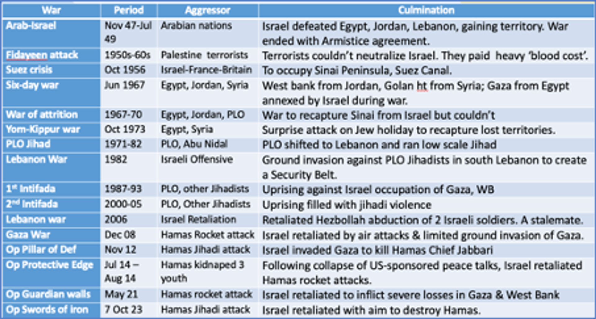 In a legal system, antecedents of alleged people/parties are invariably a part of deliberation but Karm again omitted to look at the background of Islamists whose sole aim have been to wipe out Zionism from “River to Sea” and Israel has been the victim in all but one attack (mentioned in the text box). Israeli Armed Forces has been a responsible body working in the interest of Palestinians whether in providing jobs for livelihood or letting the humanitarian aids to reach. This list also bears testimony to the fact that Islamists of Arab nations have largely been the aggressors, hell bent to commit genocide against the only Jew nation.