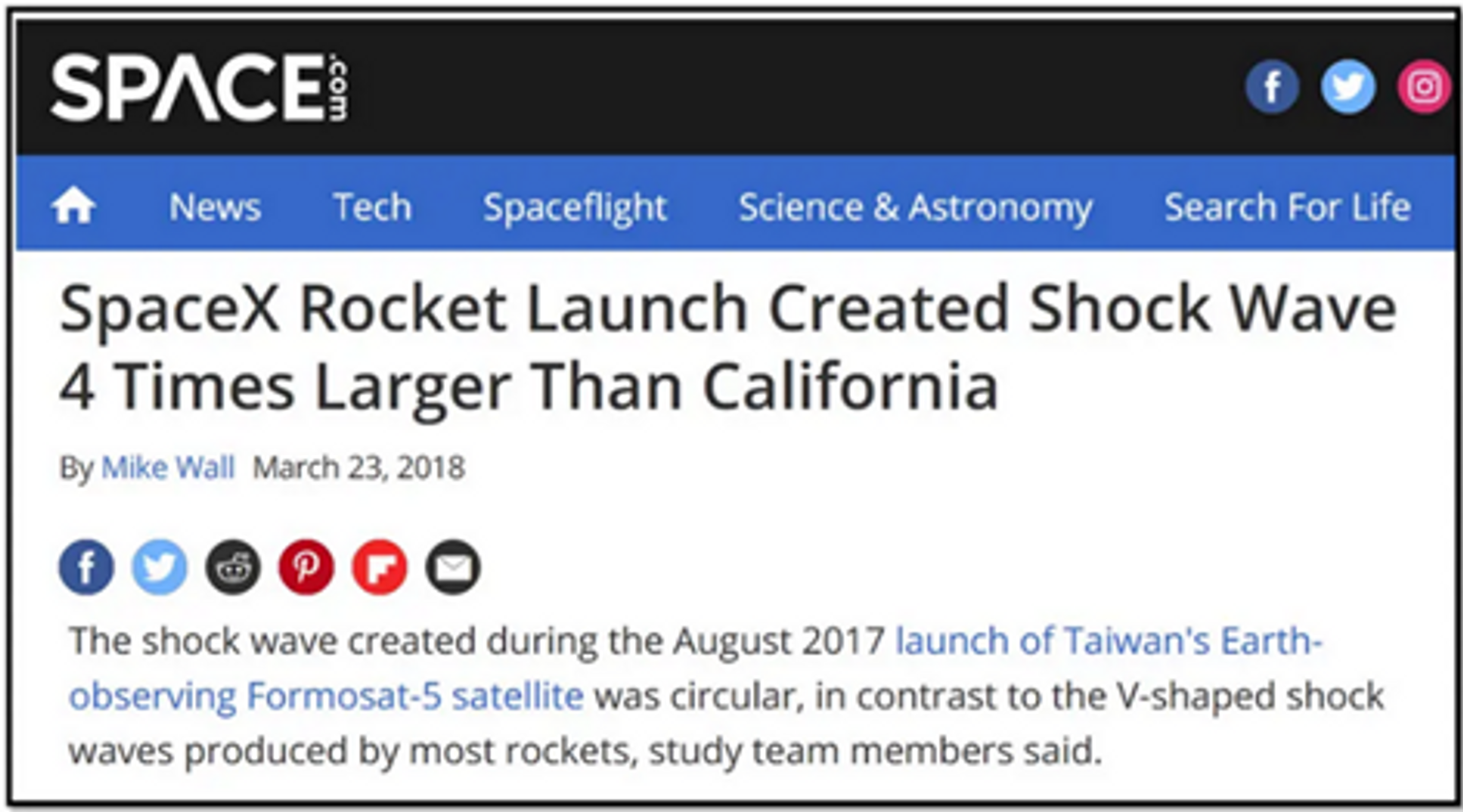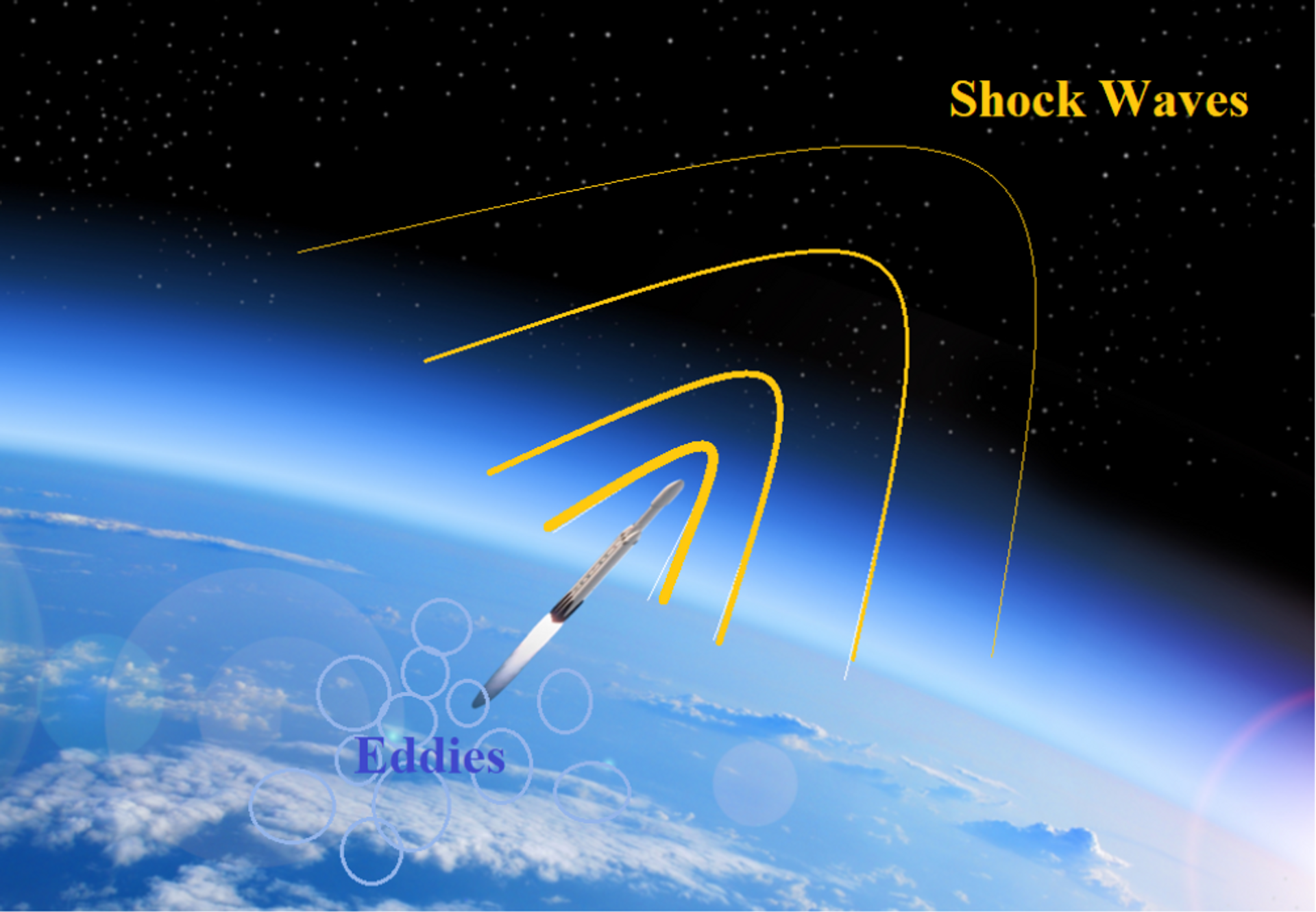 The creation of shock waves may have a direct impact on partial ablation of the atmosphere. In this regard, most if not all rockets propelling towards space, have enormous shock waves and Eddies that could push out varying quantities of atmospheric gases in to the vacuum of space. Among the gases lost, damage to the ozone layer could be the most damaging observation hitherto invisible. It may come as a shock, as a bolt from the blue if scientists or some satellites (such as Copernicus Sentinel) find a wide gaping hole in the ozone layer. There could be other reasons too in this phenomenon. The extent of the shock-waves and the eddies are directly proportional to the maximum cross-section area of the rocket-payload combination, the speed of the rocket at Karman’s line, the angle of the rocket and the Eddie-current formed behind it. For these reasons, heavy / super-heavy rockets pose a much greater threat to our atmospheric cover. Fluid dynamics in the upper atmosphere dictates through Knudsen numbers. Even if a small fraction of the shock waves translates into pressure waves, a substantial quantity of atmosphere is bound to be ablated into the vacuum of space. Besides, heavy rockets also pollute the environment a lot with highly toxic exhaust gases. Worse, from a greenhouse point of view, much of these greenhouse gasses remain afloat in the 'reverse temperature zones' of the Stratosphere and Thermosphere, thus causing a reasonably prolonged phase of temperature rise (read “Climate Change: Some Divergent Views”, https://thecounterviews.com/articles/climate-change-some-divergent-views/). However, let us come back to the issue of the Shock waves created by the massive rockets.