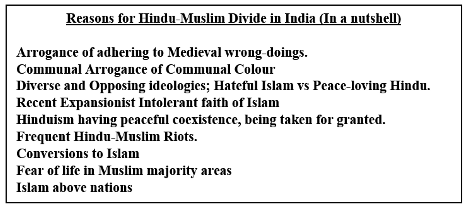 Science says if you know what is the problem and Why it is, there would be a solution…BUT…that is in Physical Science. Hindu Muslim issue is a Social Problem and therefore, it may not adhere to those principles of science. There are further issues in that the political masters may not be keen to resolve it because Hindu-Muslim problems keep many a political agendas going and alive. They have kept this issue under wrap for 75 yrs of independent India. Earlier people were not even permitted to voice their concerns on Hindu-Muslim enmities and issues whether that pertained to Muslim’s population proliferation 150% of Hindu, changing religious demography of India at the cost of Hindu, proliferating radical and Jihadi organisations in India, genocidal intent of Muslims of Kashmir and so on…and worst of all, the Hindu awakening in India with which the pseudo-secular and left-leaning polity and their leadership are very uncomfortable with. Thanks to the current Modi Govt that people are freely able to voice the numerous issues related to it, whether on social, digital or print media. This magazine thanks Modi govt to publish opinion on this matter in the various issues of this magazine: -