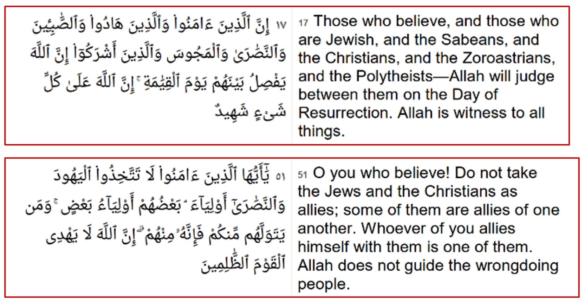 Diverse and Opposing ideologies; Hateful Islam vs Peace-loving Hindu. The religious ideologies of people are primarily contained in their temples, prayers and attitude towards others. Where Hinduism has a concept of ‘विश्वेदेवाः’, rendering respect to all religions and faiths is inclusive, Islam is hateful and inimical to worshiping of other Gods of Hindu, Jews, Christians or Zorostrians mentions in Quran. For Muslims to be co-living with others in non-Islamic nations, Quranic verses against the believers of other religions, polytheists or the worshippers of idols, must be deleted. All respective govts in the world should mandate the deletion of those hateful expressions of verses in Quran.
