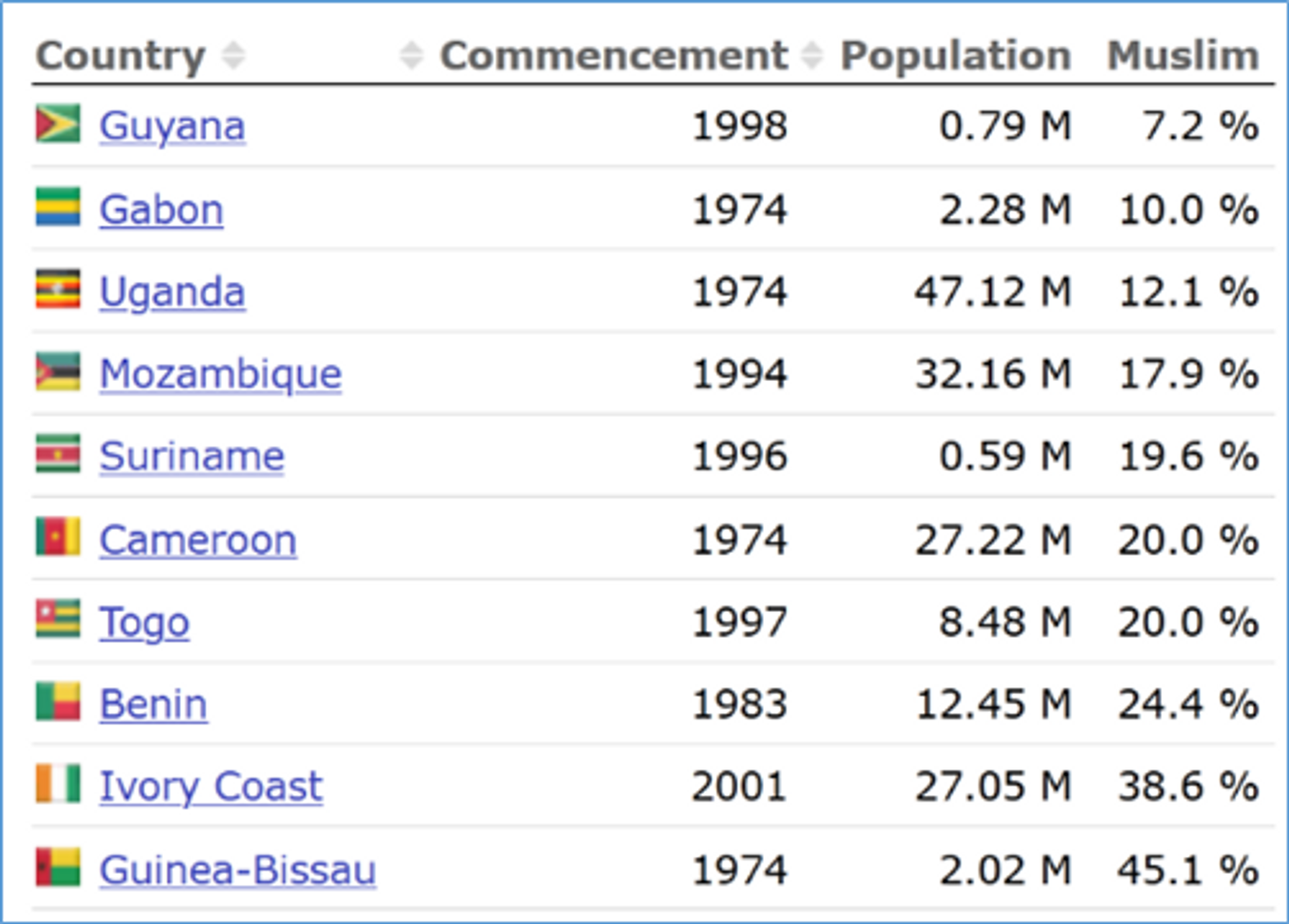 OIC approach in low Muslim population States (like Guyana, Gabon, Uganda, Mozambique, Guyana etc) are very clear…Offer a small aid/fund and lure them by making them tow OIC lines, in obtaining their important votes for furthering the cause of Islam (that OIC does) and also use them as tools of propaganda (of helping non-Islamic nations). There are 24 such OIC nations shown below, having population of <10 million each (many even <1 million) representing at the UN and UN Human Rights Commission with their votes counted as one, at par with nations having >1400 million population. This is a paradox.