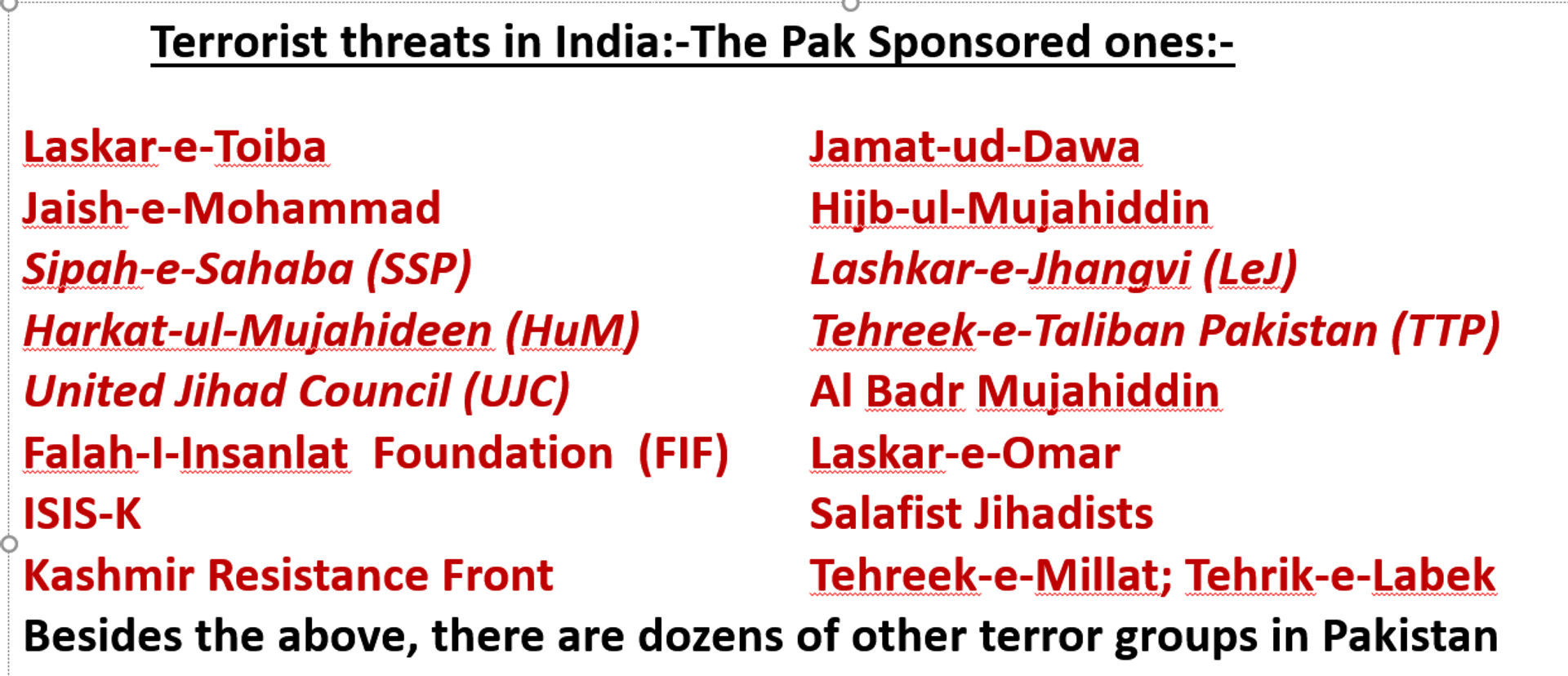 On 20 Apr 2023, five Indian soldiers were martyred by the Islamic terrorists in the Bhimbar Gali area of Poonch (J&K) while carrying rations, groceries and sweets as a goodwill gesture for the local residents on the eve of their Eid festival. Preliminary inquiry suggests that the local civilians colluded with Pak terrorists to mount the attack. It has become a trend of Pakistani Army to operate 'launch pads' of trained Islamic terrorists, assist them to infiltrate in India, manage sleeper cells through jihadist network to hide them from the eyes of security forces and then mount Jihadi attacks. This trend continues...be it serial blasts in Mumbai, the Indian Parliament attack, 26/9 Mumbai attack and the numerous many other Islamic terror attacks in India. Pakistan has acquired massive expertise in grooming, training and managing not only Pakistani but the global Islamic terror network. Today any Islamic terrorist act in the world has some threads connecting with Pakistan. Last Paki PM Imran Khan admitted before President Trump during his visit to Washington that he had 34 odd home-grown terrorist groups with tens of thousands of terrorists. No more explanation is required to justify Pak being a terrorist hub of the world. Pakistan alone harbours >140 internationally proscribed terrorists on its soil.