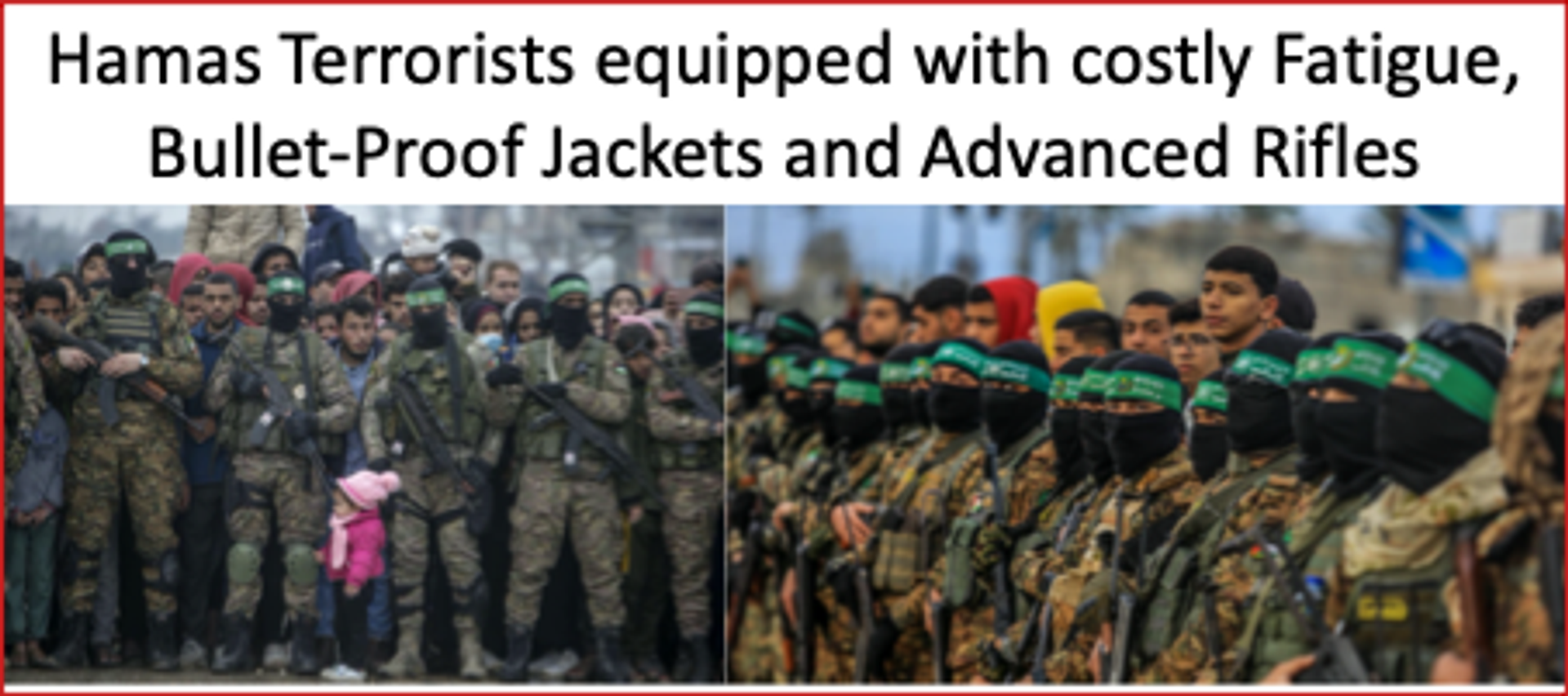 The world witnessed during the recent hostages exchange that the present Hamas cadres are in receipt of bullet proof jackets and advanced assault rifles shown above, that must have come in some of the trucks carrying aid to Gaza. So, IDF may have a valid point to stop the aids till Hamas returns all the Hostages safely. When will all these ordeals of hostages as well as of the Palestinians end, is anyone’s guess BUT surely the terrorists must not be let to have their own way. It is a shame for the UN.UNSC/UNHRC to enter the blackmailing deals.