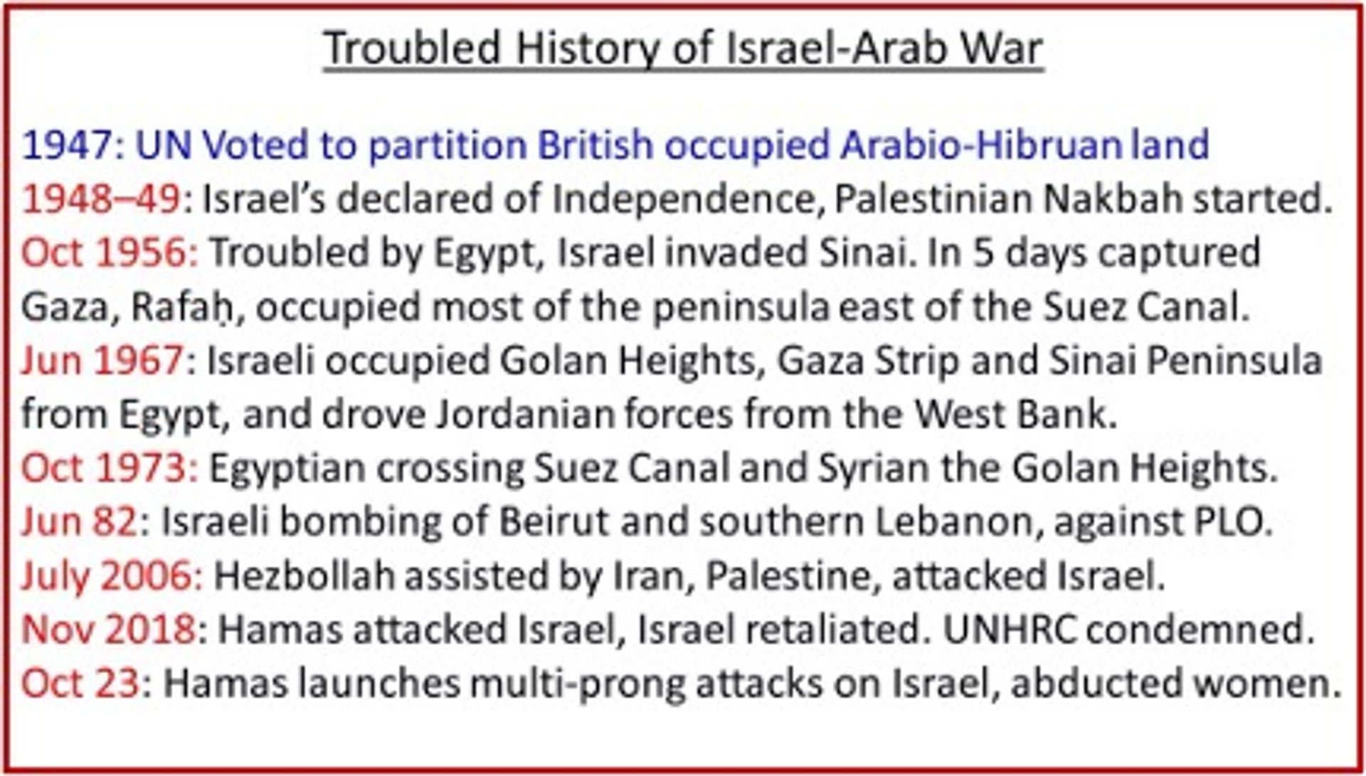 The above Islamic belief is why the land of Israel carved out of the Arabian territories has become a bone of contention for the Islamists to liberate. Initially the neighbouring Arabian States tried to crush Israel but received bloody nose every time in return. Thereafter, they adopted a different tactics of founding various jihadi organisations to attack them but that too couldn’t succeed. Various attacks by them are shown in the text box below. The Jews of Israel had firmly stood united with their Govt in their struggles of the past. Jihadi attack of 7th Oct 23 was neither the first one nor will be the last as long as Islamic terrorists remain in Gaza or the West Bank. That is why Israel had taken a resolve to decimate them.