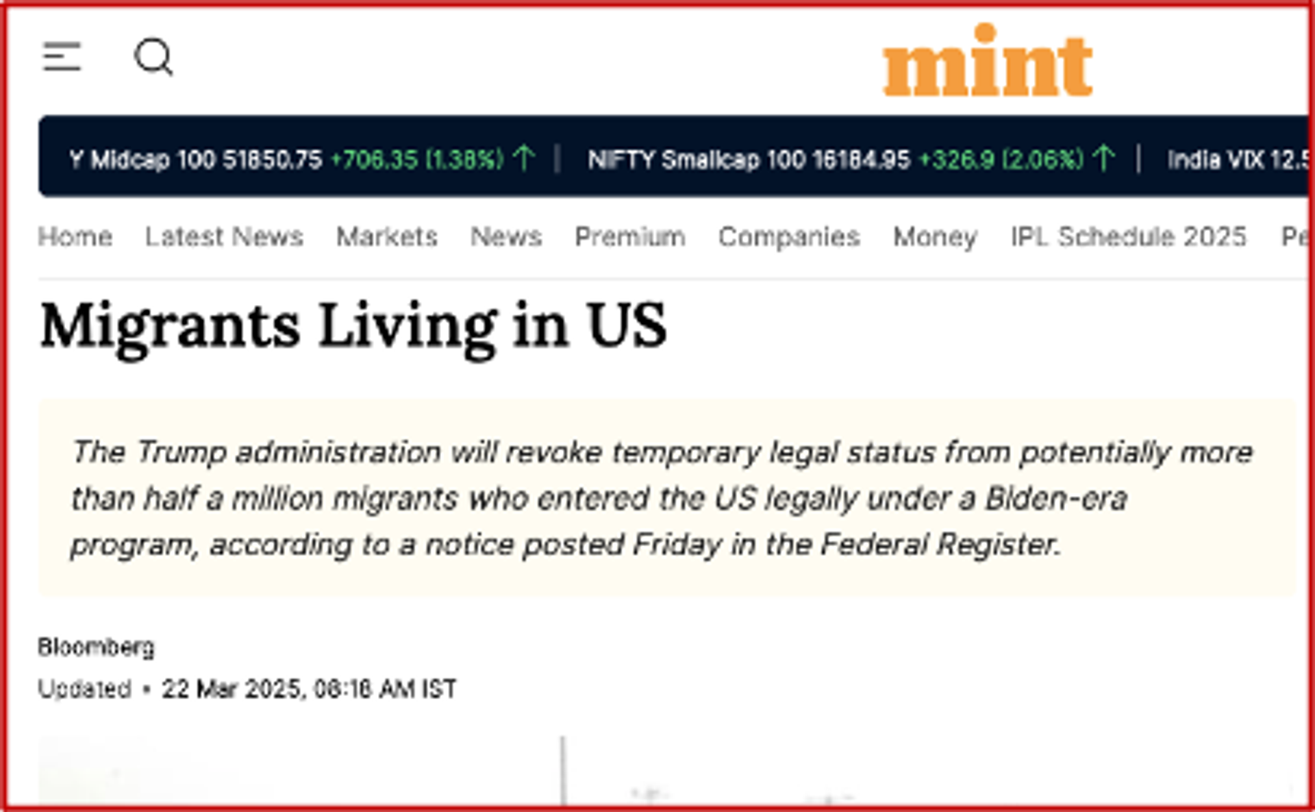 Although people all over the world dream to cross over to US territories for varied reasons, by hook or crook, legally or illegally, many are unable to find refuge and end-up as illegal migrants. The broad reasons for migration included better life prospects, fear of political persecutions in own nations among some others. Although Trump was strict against the Islamists seeking refuge in his 1st term, Biden administration slackened that hold. On the contrary, both Biden and Kamala Harris encouraged it publicly. This resulted in approx. 12 million illegal migrants into the USA that made numerous many roads & lanes look like slums. They even illegally occupied many of the vacant public and private dwellings that became a major election issue, leading to the downfall of the Democrats. It also started creating a law & order problems for the US police who were discouraged by the Biden administration from taking strict actions. Lot many Islamists could infiltrate who started behaving as mobs during Palestinian protests. Major infiltration routes for the illegal migrants included both thru’ Mexican and Canadian borders. US Administration must also accept that there is a DeepState within the state who encourage, shelter and also provide legal protections to such illegal, anti-US migrants in the name of democracy, many having criminal backgrounds. President Donald Trump is the first US Prez who has shown resolve to expose the nexus and even gone ahead to review their legitimacies. These apply mostly to the nationals of Cuba, Nicaragua, Haiti and Venezuela who were allowed to fly directly to the US after applying from abroad during Biden’s era. It is deplorable how blatantly the DeepState system has started providing legal hurdles in their deportations even before Trump assumed the office on 21 Jan 2025.