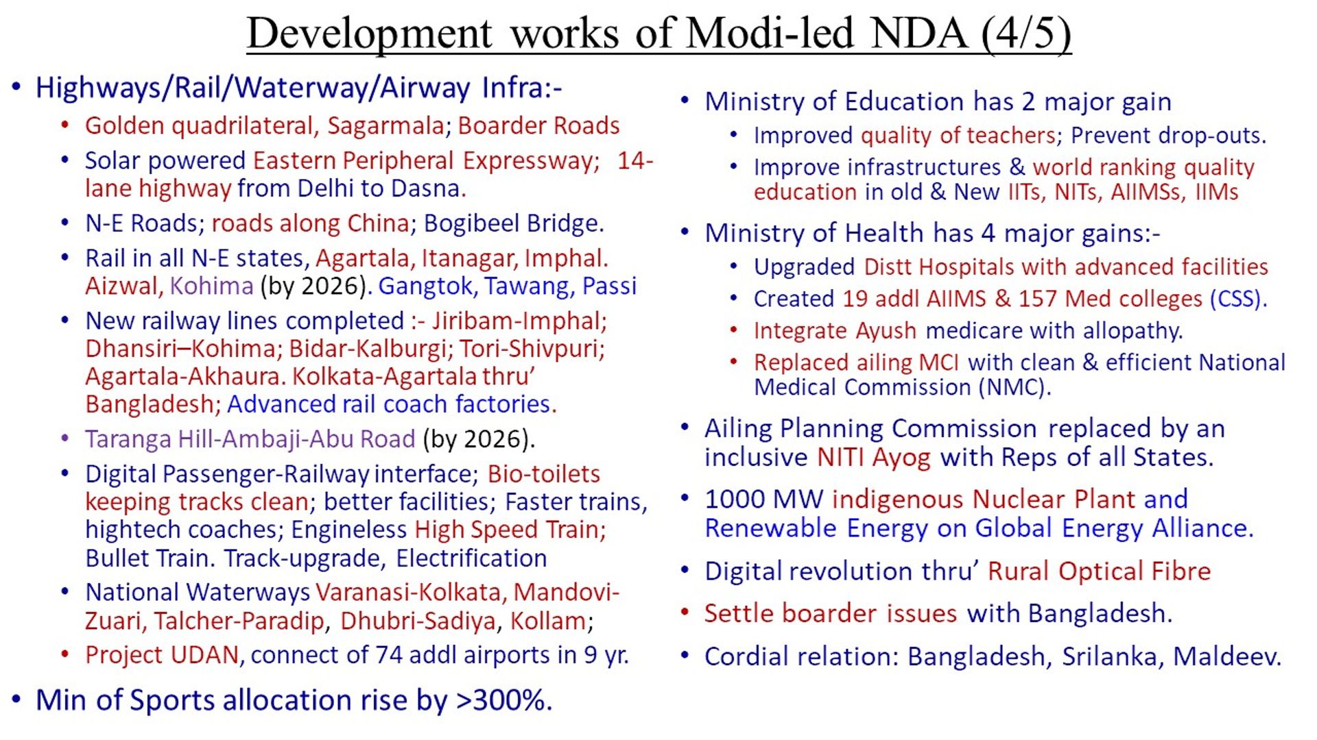 - Infra Development of the nation was at a snail pace.