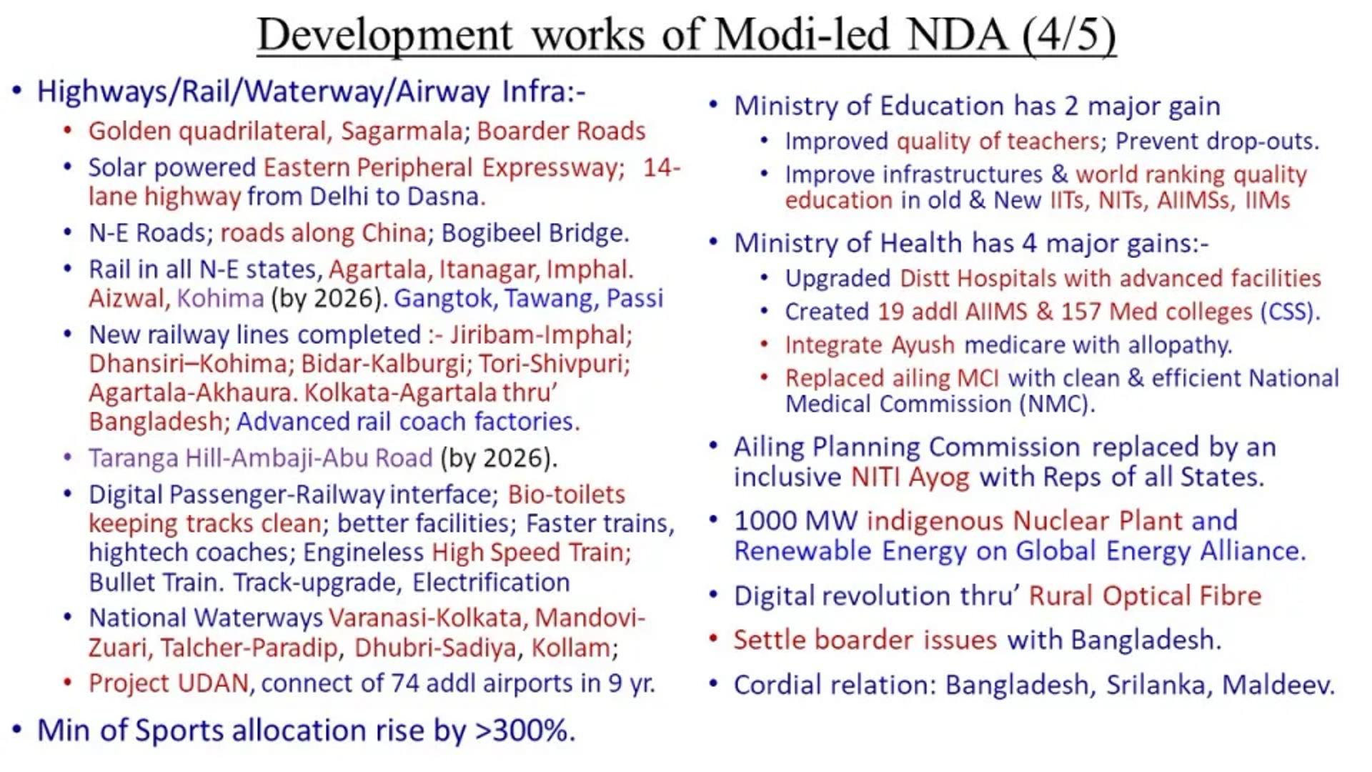 - Infrastructure Development of the nation was at a snail's pace.