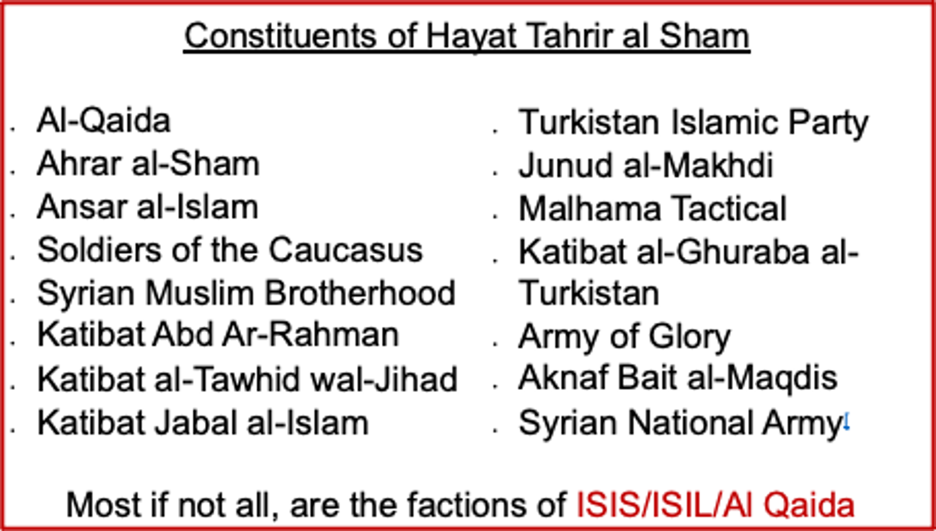 After the western nations started interfering against President Al-Assad, its instability started. This starved-economy nation that was earlier supported by Iran, Russia and China in its economy, is expected to suffer under Jihadist rule. It could turn out to be a major fertile ground for Jihadi terrorists. Just like Pakistan and some others, Islamic terror could be a major export object for Syria in the coming years if this cancer of jihadists continues.
